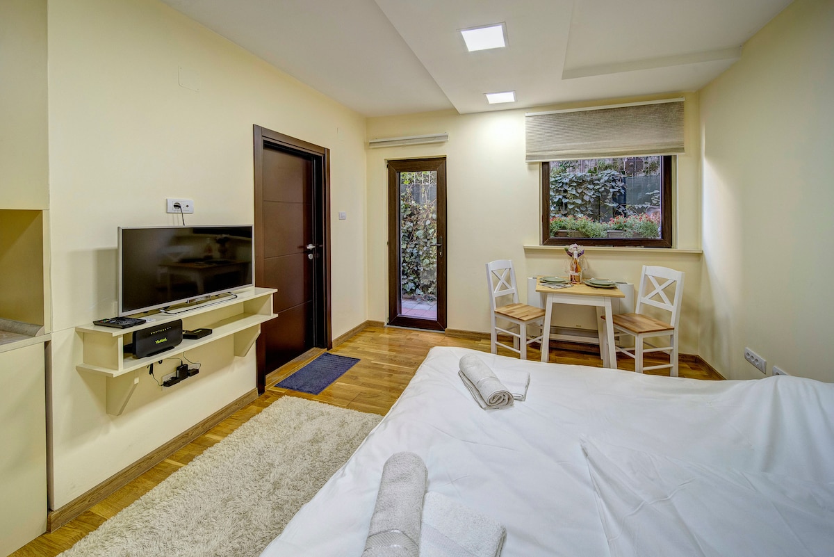 Um estúdio aconchegante em um edifício histórico do século XVIII no coração de Zemun — um dos bairros mais charmosos e pitorescos de Belgrado. Cuidadosamente projetado e cheio de luz natural, o estúdio oferece uma atmosfera calma e confortável com caráter local autêntico e uma sensação caseira. Bem conectado por transporte público, é uma base ideal para explorar Zemun e o resto de Belgrado. Perfeito para casais ou viajantes curiosos que querem desacelerar, relaxar e curtir o charme de Zemun.