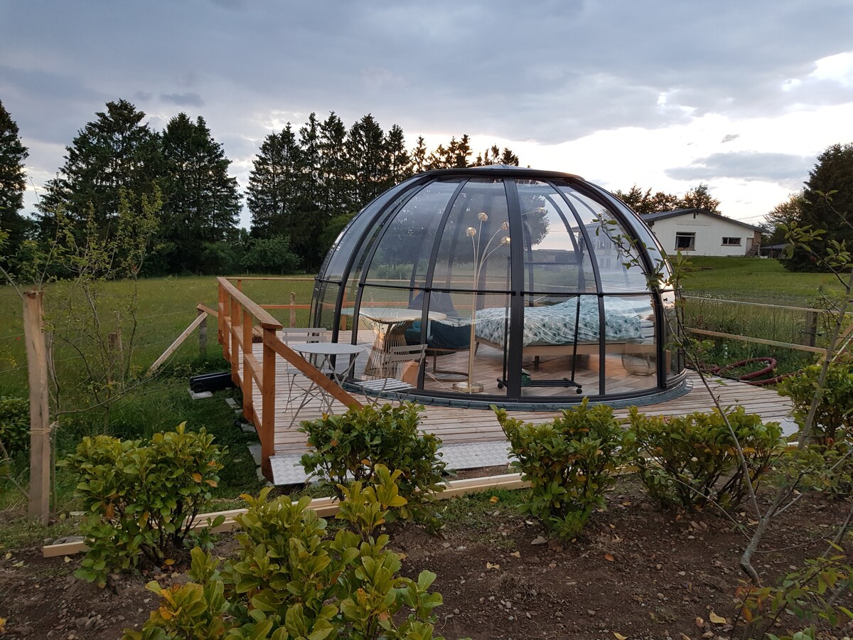 La bulle au bois dormant d'Ovifat est un logement insolite type dôme situé dans un endroit idyllique et très touristique avec plein de choses à visiter.