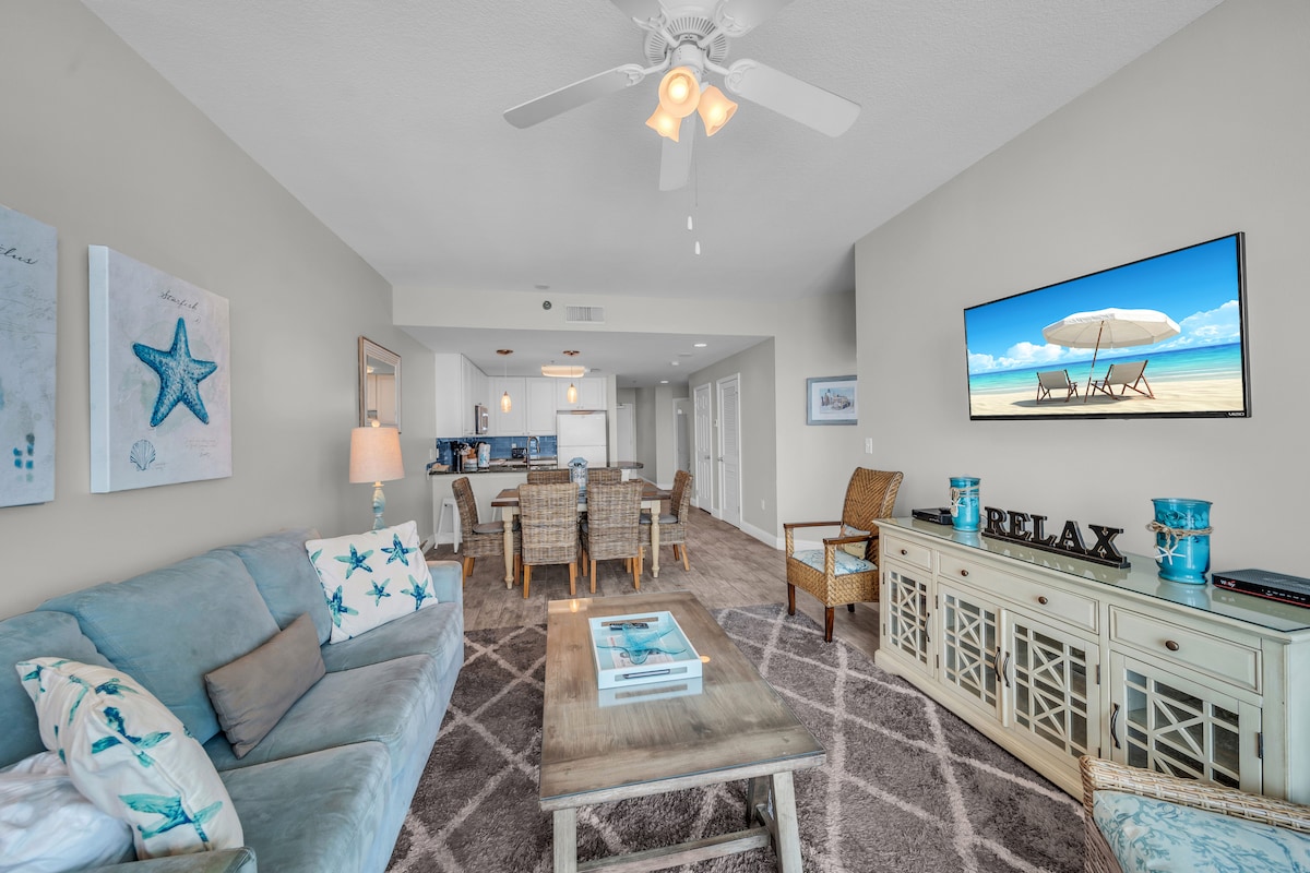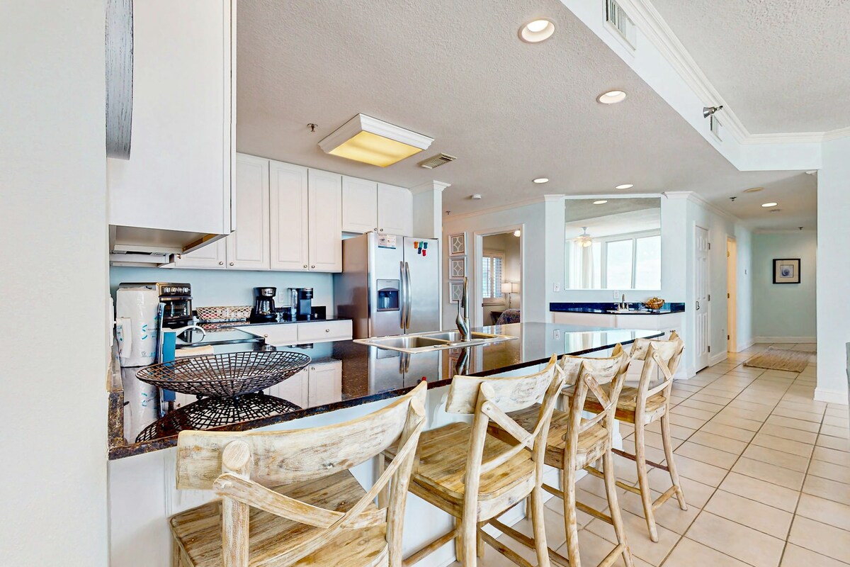 Bem-vindo ao Farol 905, seu lugar na primeira fila para o paraíso da Costa do Golfo! Hospedado pela Current Tides, este refúgio arejado no 9º andar tem tudo a ver com sol, ar salgado e vida fácil. Comece o dia com café na varanda, pegue as ondas e relaxe no confortável espaço de estar. A cozinha totalmente abastecida facilita a hora do lanche, e as suítes king mantêm as coisas aconchegantes. Com piscinas, banheiras de hidromassagem e um calçadão direto para a areia, cada momento é uma vibe. Pegue seus óculos de sol e prepare-se para a felicidade sem parar na praia
