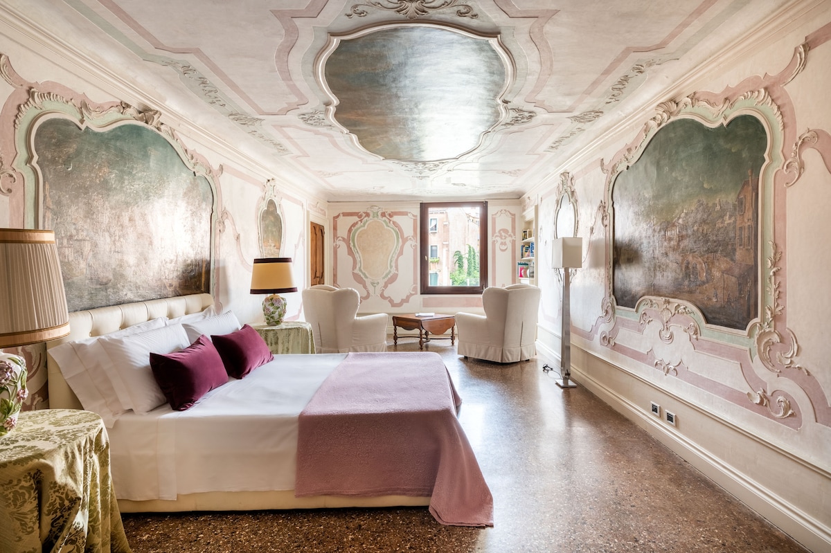Aconchegue-se com um livro, tome café da manhã e jantar enquanto admira a vista incrível das torres e canais de Veneza, viva como um verdadeiro veneziano no bairro mais típico de Veneza, a poucos passos da ponte Rialto, Ca' D'oro e San Marco em um apartamento acabado com móveis e ornamentos feitos por artesãos venezianos e de Murano. Você vai se sentir como se estivesse experimentando a atmosfera fantástica do século XIX, mas com todos os confortos de um apartamento moderno. Não perca esta experiência incrível