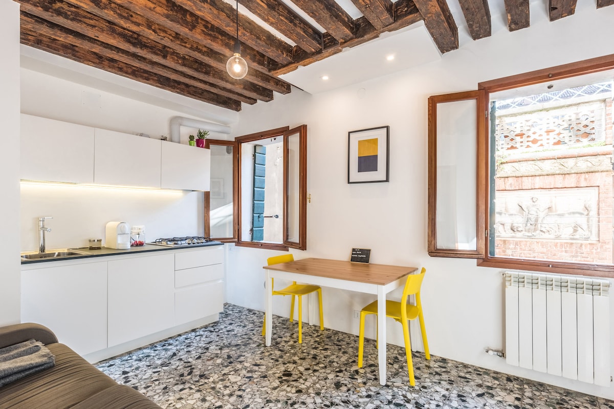 (CIN-Código de Identificação Nacional: IT027042C2558RPPOW - CIR-Código de Identificação Regional: 027042-LOC-01844 - A.P.E- Código de Identificação n°95942/2021) Um lugar de sonho criado por um coreógrafo e um engenheiro que trabalha na aviação com uma paixão pela arte. Lindo apartamento estúdio perfeito para uma estadia romântica em Veneza. Apenas renovado, a 10 minutos a pé da Ponte Rialto e da estação de trem, super perto de tudo, mas ainda em uma área tranquila e original da cidade.