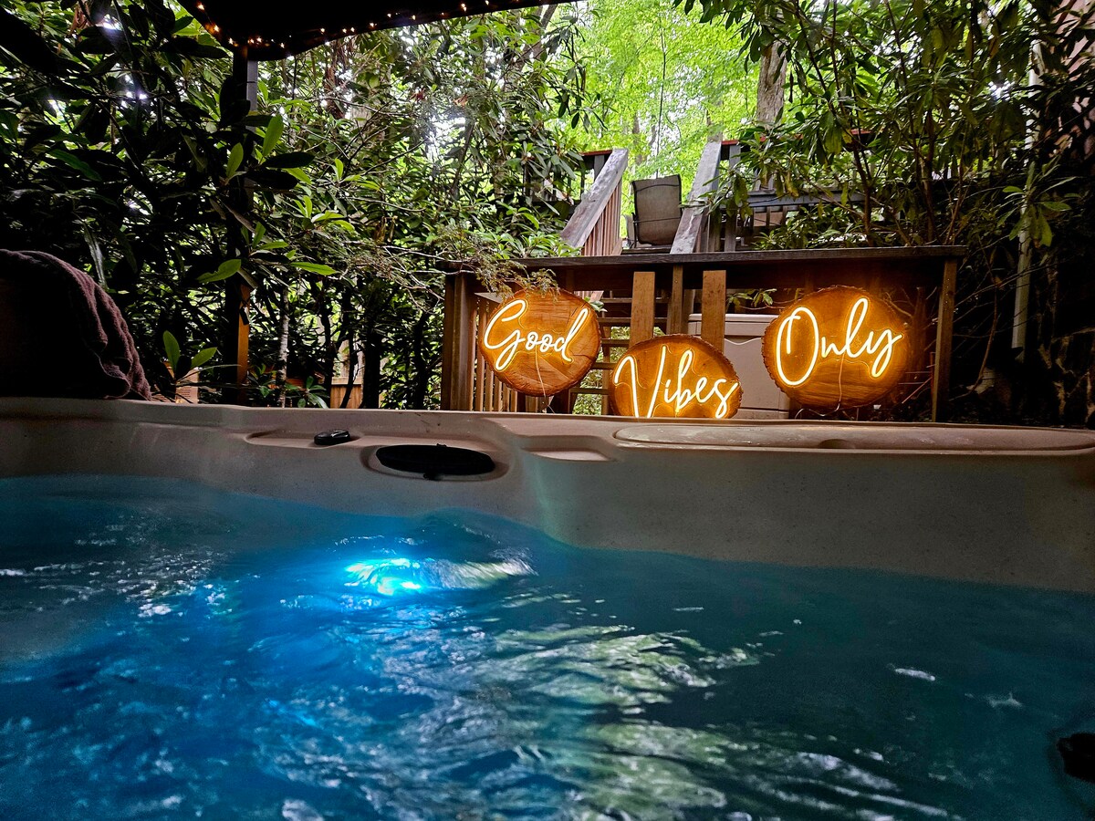 Cabana romântica perto de uma cachoeira com caminhadas deslumbrantes e um spa privado na montanha. Perfeitamente localizado para aventuras ao ar livre e relaxar no conforto quando você estiver de volta. Características: - Cozinha totalmente equipada - Camas California King e Queen de marca superior - Churrasqueira ao pátio e flattop - Spa privado: sauna tradicional, chuveiro ao ar livre, banheira de imersão, banheira de hidromassagem - Área de fogueira e lenha - Starlink Wi-Fi - Aceita animais de estimação