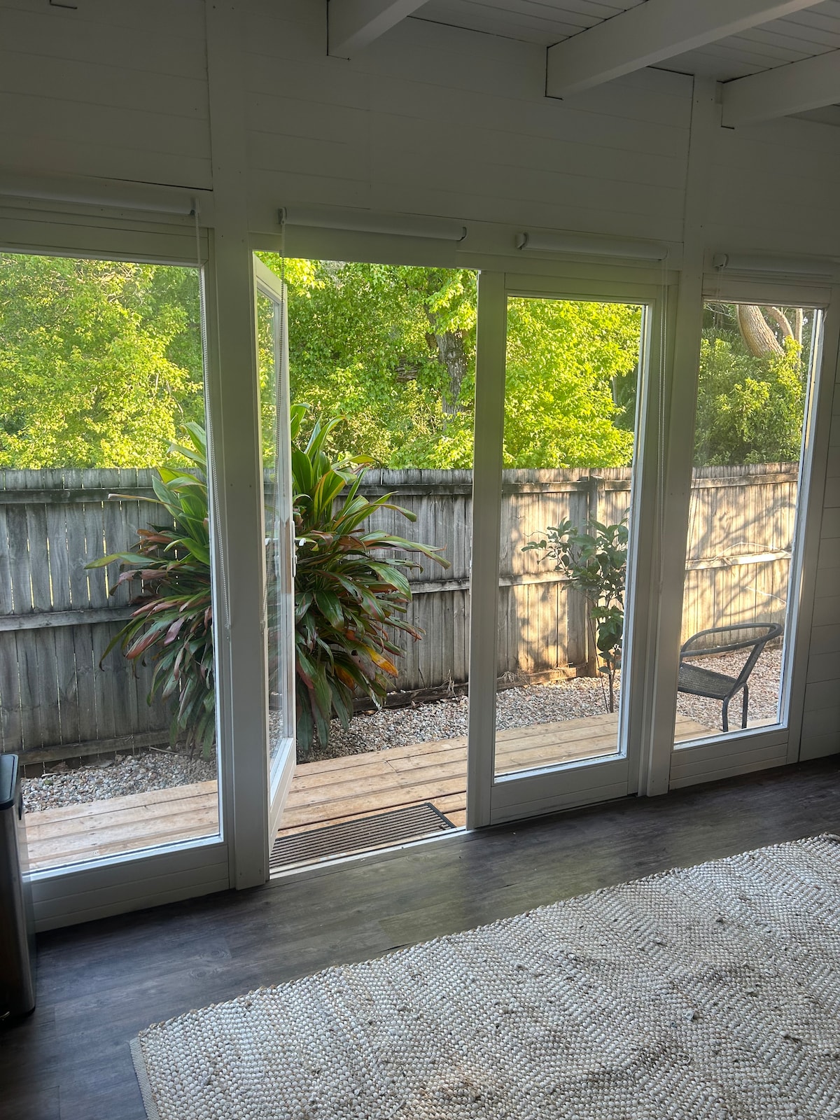 Modern new studio opposite Belongil Beach with a short 10 minute walk to town and a 3 minute walk to the famous Treehouse restaurant and bar. The studio has a separate entrance from the main house. The kitchen has a full fridge, hot plate, microwave ( located in cupboard above the fridge) and air fryer. There is mini weber bbq for guest use. This cabin has everything you need for a lovely seaside break including aircon and a fan.