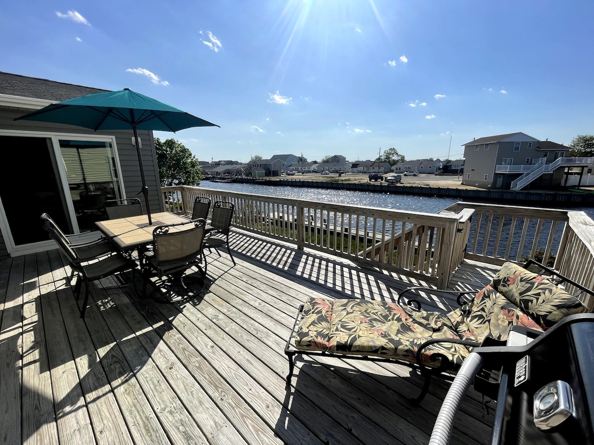 NEW ADDITION/RENO COMPLETED FOR 2023 SEASON. 1st floor unit of BAYFRONT duplex with amazing views & location on quiet street but you can still walk to the center of Beach Haven. Enjoy stunning views & breezes from the daybed & dining table on private deck. Hop in the bay for swimming, kayaking, paddle boarding & the beach is a short 3 blocks. Crab and fish off the bulkhead, relax in the hammock and enjoy evenings roasting marshmallows around the fire pit with the sounds of the bay.