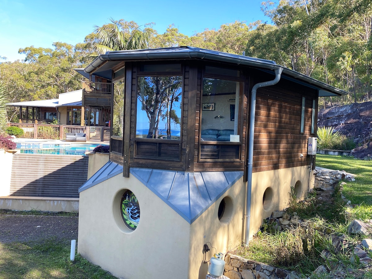 A Pool House faz parte da casa arquitetônica mais deslumbrante de Crescent Head. Esta habitação hexagonal independente tem vista para o oceano em um quarteirão de arbustos de sete acres. Você desfrutará de privacidade e tranquilidade em seu próprio ninho entre as árvores. Estamos a apenas dois minutos da vila de Crescent Head.