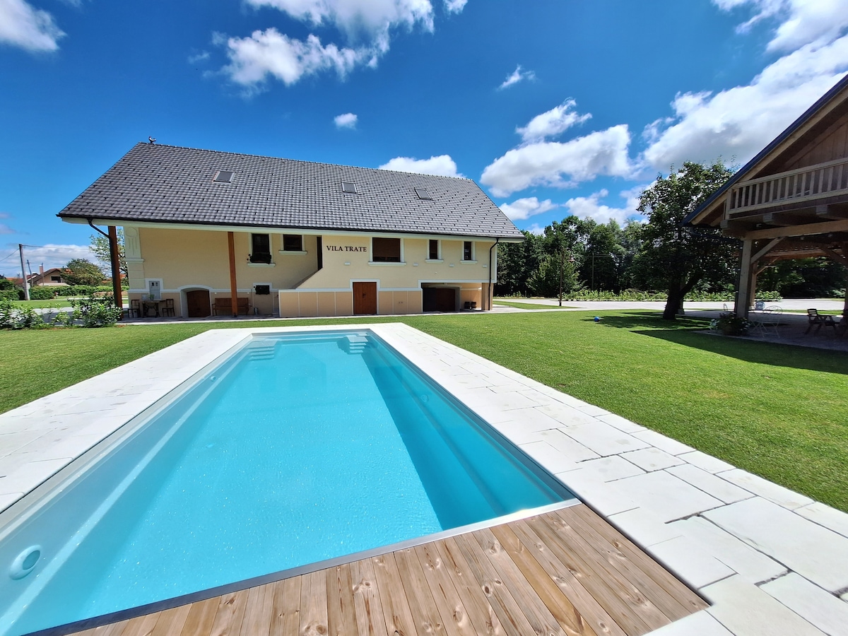 A casa exala luxo com comodidades modernas, aninhada em um ambiente idílico perfeito para quem busca paz, relaxamento e rejuvenescimento. Situado na pitoresca aldeia de Globoka, a 250 metros do nível do mar e perto de Ljutomer, o coração de Prlekija, oferece um cenário ideal para relaxar em meio a colinas pitorescas e vistas deslumbrantes, longe do barulho urbano e da agitação. Oferecemos uma mistura harmoniosa de beleza natural e serviços criados para nutrir a mente, o corpo e o espírito.