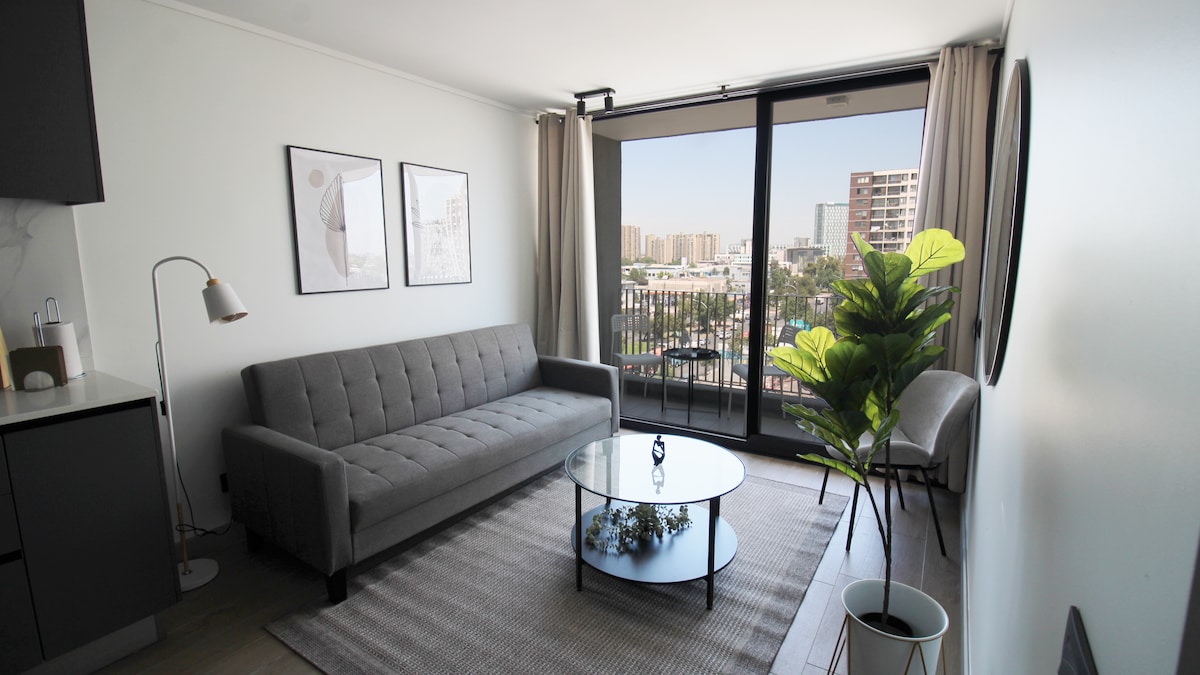 Moderno departamento con equipamiento de alto nivel y aire acondicionado para tu máxima comodidad. Disfruta de acceso autónomo y excelente conectividad, a sólo 20 minutos del aeropuerto en taxi y a 18 minutos caminando de la estación de metro Quinta Normal, o 5 minutos en taxi. Ubicado en un tranquilo barrio, ideal para el descanso, a pocos pasos de supermercados, parques, hospitales y bancos. Los principales puntos de interés turístico están cerca y son fácilmente accesibles en Uber o Metro.