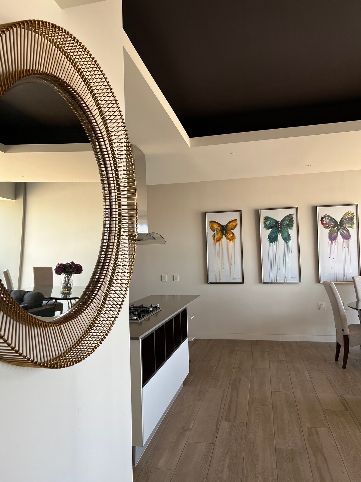 Lujoso departamento en Guadalajara, decorado por el despacho FNisino y con muebles fabricados a la medida por manos tapatías. Hospédate en uno de los edificios más exclusivos y nuevos de Providencia, cerca de la zona financiera, el Bosque Colomos, Punto Sao Paulo y solo a 10 minutos de Andares. Espacio excepcionalmente cómodo, que cuenta con todos los servicios y que te hará pasar una increíble estancia. Cuenta con seguridad 24/7, alberca, gimnasio, coworking y estacionamiento propio.