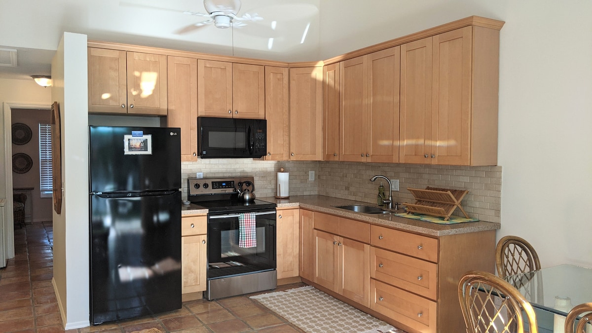 Recém-reformado, adorável unidade final privada PGA National Cottage/Townhouse com dois quartos, closet e dois banheiros. Cozinha novo com eletrodomésticos de aço inoxidável, máquina de lavar louça, mesa de jantar completa, máquina de lavar e secar roupa na unidade e WIFI de alta velocidade gratuito. Desfrute do pátio privativo com assentos ao ar livre e grelha a propano. A uma curta distância a pé de muitas comodidades, como a piscina comunitária.