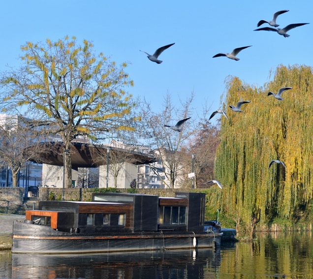 La péniche Phileas est un bateau des années 1930 avec un aménagement contemporain ouvert sur la rivière. Cette résidence flottante, design, calme et confortable est idéale pour couple ou des parents enfant. Intimité et dépaysement, en plein cœur de Nantes, sur la rivière Erdre, classée par l'Unesco. Centre ville à 5mn à pied. Arrêt Tramway à 50m liaison directe vers centre ville' en deux stations Location de vélo, restaurants, cafés, boulangeries, alimentations, pharmacie, dans un rayon de 150m.