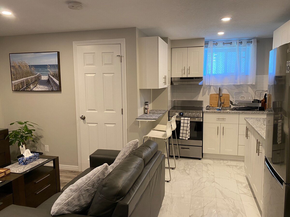 Relaxe e relaxe neste espaço calmo e elegante. Um quarto inteiro e um banheiro exclusivo. Como esta é a nossa residência principal, nossos hóspedes podem ter acesso limitado à área de estar principal e à cozinha (apenas para café, água, etc. Não é permitido cozinhar e o acesso à geladeira também é restrito). Lavanderia privativa disponível. A unidade fica mais perto dos principais centros comerciais e restaurantes. 8 minutos de carro do shopping Masonville. 5 minutos a pé do LCBO, um minuto a pé do posto de gasolina e Tim Hortons.