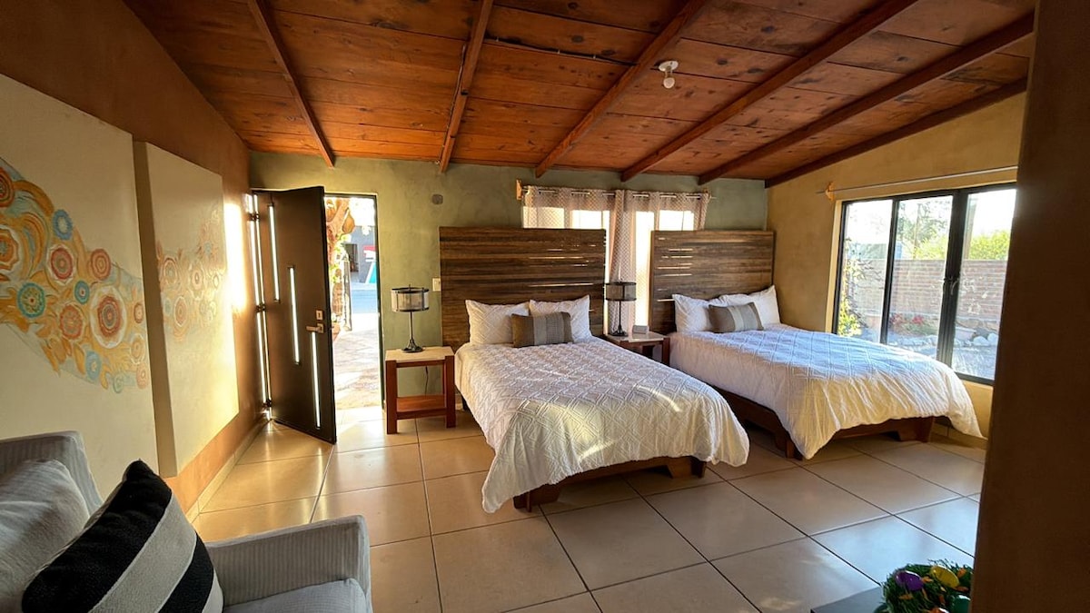 Desfrute de uma estadia tranquila e acolhedora, localizada no centro de Loreto, a poucos minutos do malecón, da praia e da Paróquia de Nossa Senhora de Loreto. Temos quartos privativos, confortáveis e bem equipados, ideais para descansar depois de explorar a cidade. 🚲Bicicletas grátis 🌿Jardim com sombra e flores 🚗Estacionamento espaçoso e seguro dentro da propriedade Perfeito para casais, famílias ou pequenos grupos que procuram um espaço confortável e limpo.