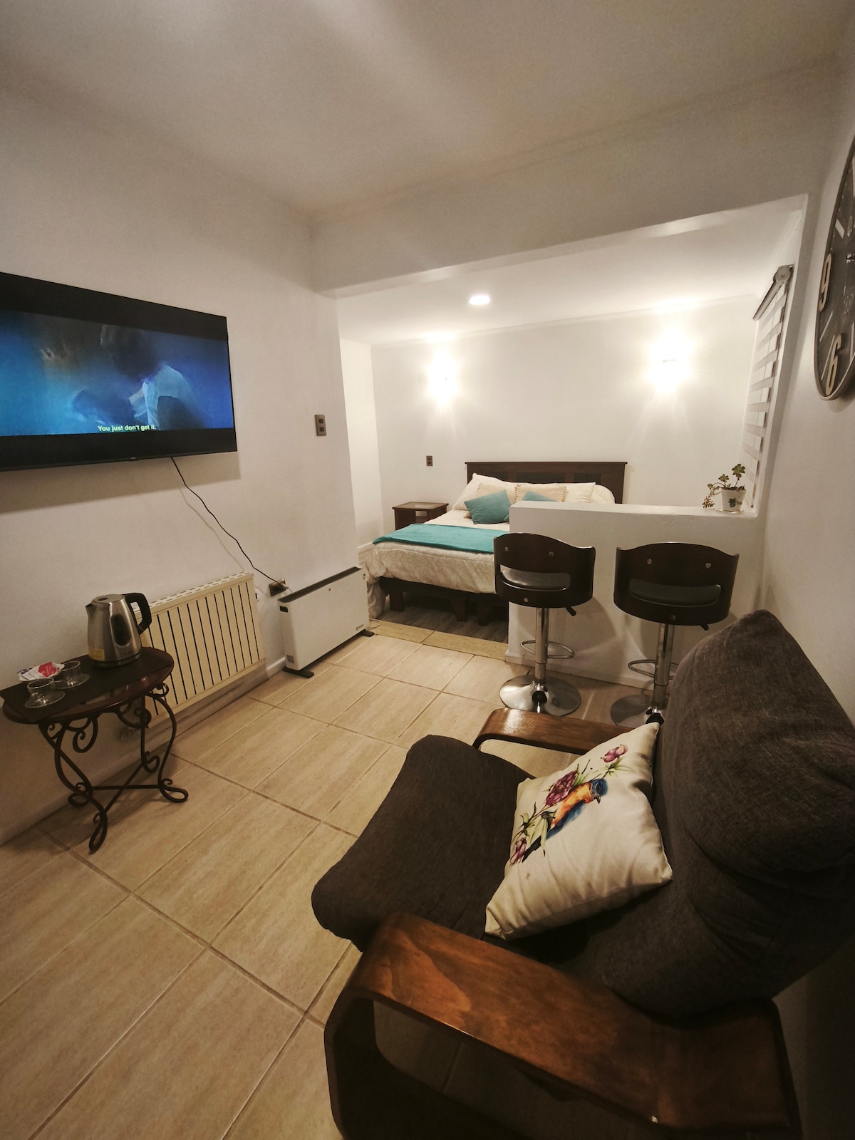 Bonito e novo apartamento no primeiro andar, 1 quarto privativo, cama de casal e sofá-cama de casal (confortável), Wi-Fi e TV a cabo, perto do terminal de ônibus, rota 5 e a 15 minutos do centro (aproximadamente). Estacionamento próprio. Relaxe neste espaço tranquilo e elegante. Espero que você não se arrependa!!
