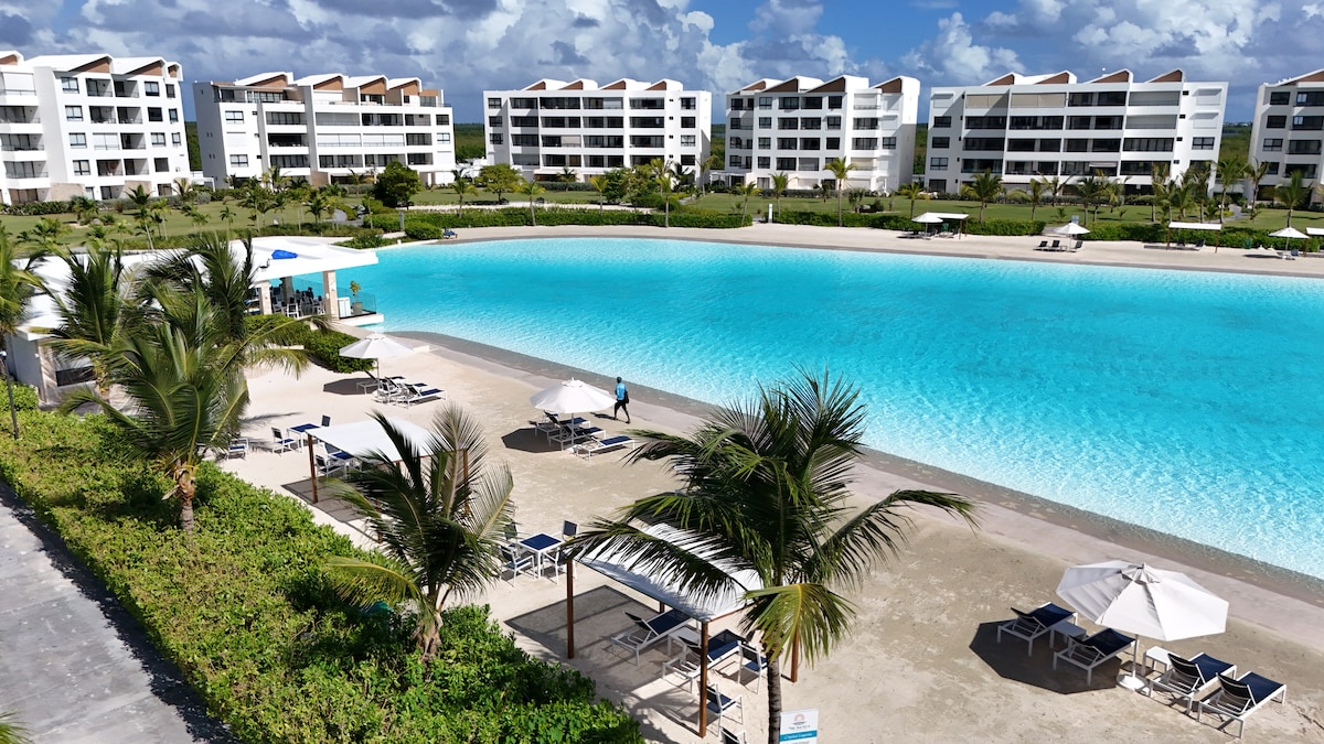 Apartamento com piscina, lago e praia artificial em Punta Cana