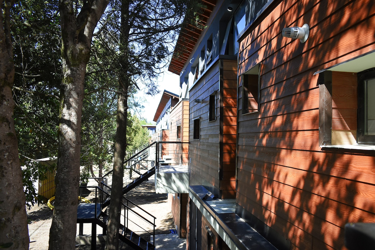 Nosso refúgio de designer para dois no coração de Villa Llao Llao. Um espaço intimista, moderno e totalmente equipado, cercado por floresta nativa para desconexão total. Ideal para casais que procuram paz e natureza com o máximo conforto, longe do barulho do centro. O ponto de partida perfeito para explorar o Circuito Chico. Sua viagem para a Patagônia começa aqui.