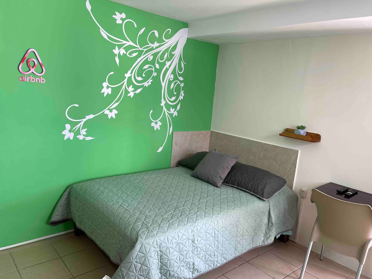É um mini apartamento central, perto da Universidade Veracruzana, Palácio do Governo e Municipal, a duas quadras do centro. Neste lugar nasceu o famoso escritor xalapeño Sergio Galindo. É bem iluminado, com boa ventilação, sem barulho, dentro do pátio de uma casa antiga cheia de plantas com cadeiras que convidam você a ler ou meditar. Tem uma entrada separada. Há privacidade e a limpeza é feita semanalmente e os lençóis são trocados e sabonetes artesanais são entregues.