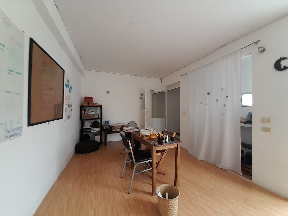 Apartamento simples, acolhedor e funcional, ideal para quem quer explorar Xalapa a pé. O melhor de tudo: um quintal com uma vista privilegiada da natureza do Parque Los Tecajetes. Por ser um edifício antigo e tradicional, o banheiro completo é privativo, mas está localizado bem em frente à entrada do apartamento (do outro lado do corredor), respeitando a arquitetura original que priorizou a higiene e a ventilação. Localização invejável para amantes de café e caminhadas no parque!