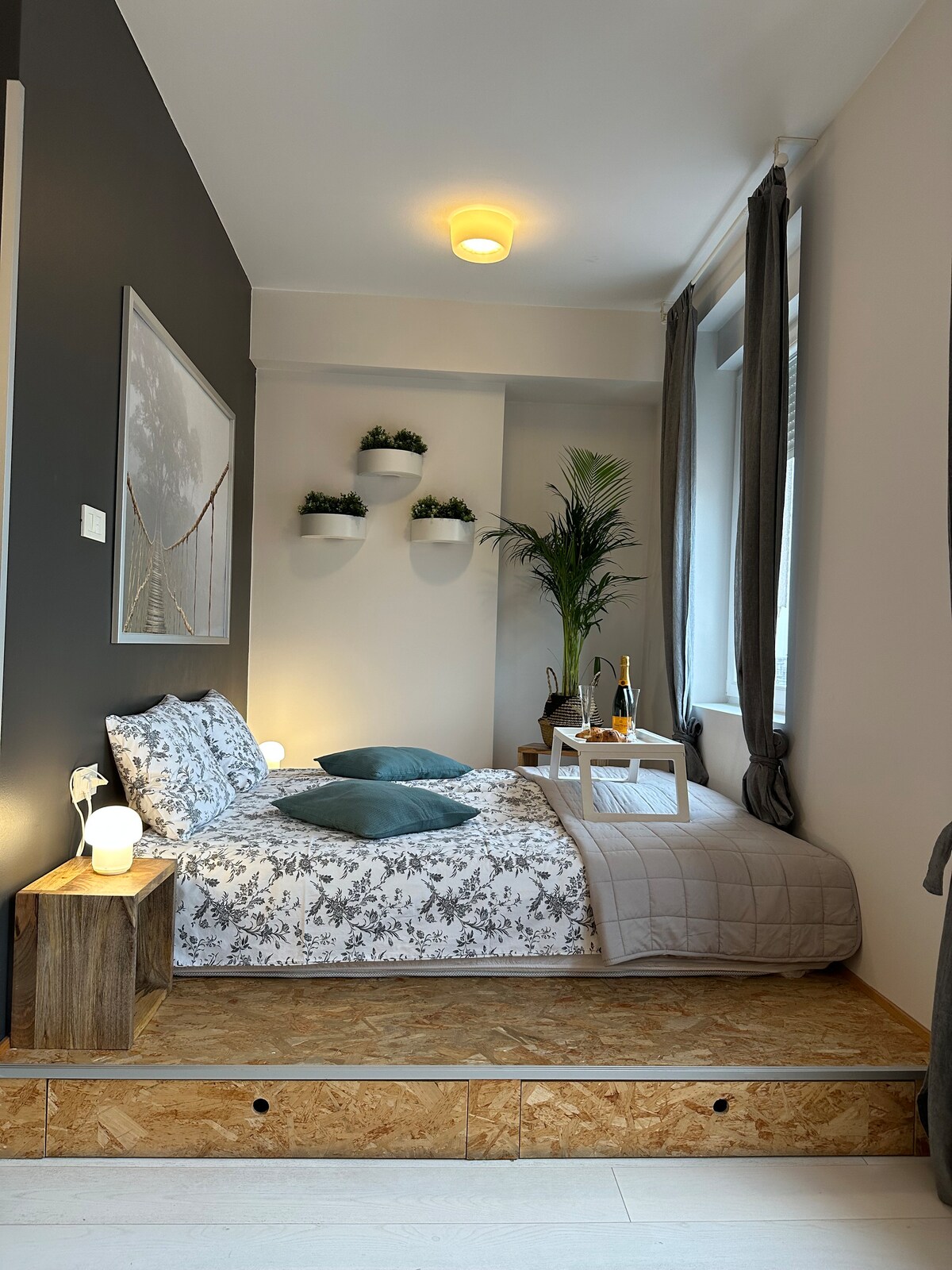 NOVO apartamento elegante no CENTRO DA CIDADE a menos de 10 minutos a pé da praça principal e da estação de trem. Situado em um quintal tranquilo na rua principal para que você possa desfrutar de noites tranquilas. Há um quarto com cama queen size, sala de estar com TV + NETFLIX e sofá-cama (queen size), banheiro com toalete e espaçoso chuveiro separado. Todos os móveis e eletrodomésticos são novos. Chá e café GRÁTIS, toalhas GRÁTIS.