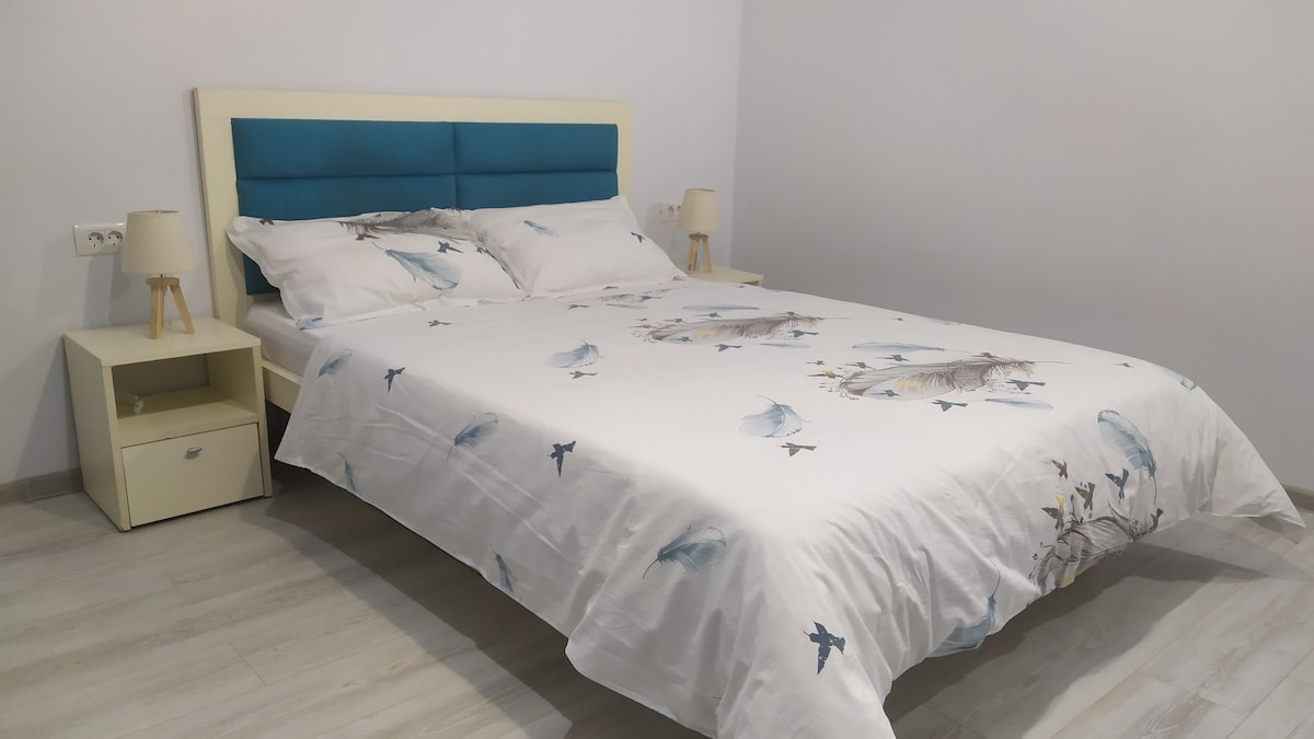 Muito espaçoso, 64 m2, apartamento de 2 quartos, em Constanta, na costa do mar negro, apenas renovado, muito limpo e tranquilo, perto de Constanta nova praia (praia Reyna) e Mamaia resort (7-8 minutos a pé de cada um deles) e muitas outras atrações como magia aquática, parque lunar, golfinho, macdonalds e muitos outros restaurantes ao redor. Cada quarto tem uma varanda muito generosa e uma cama matrimonial - 180/200 cm (king size ) Lençóis de cama, toalhas e sabonete para as mãos são gratuitos Tv hd completo, um em cada quarto- 108 e 100 cm Internet wi fi grátis e TV a cabo Ar condicionado O estacionamento é gratuito ao redor do edifício A cozinha está totalmente equipada com tudo o que você precisa. Aqui você também pode encontrar café, chá e açúcar, gratuitamente Frigorífico, fogão a gás, cafeteira, sanduíche, panelas, panelas, pratos, prateado etc Banheiro equipado com banheira de hidromassagem e chuveiro Máquina de lavar roupa sabão Aquecedor a gás para água quente Armários de roupas muito generosos em cada quarto