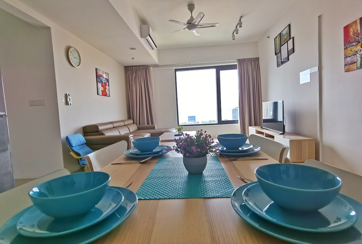 Newly built high-floor 3-bedroom with 2-bathroom apartment located in the heart of Bukit Mertajam, Penang. Strategically situated 10 minutes drive to Penang bridge, Icon City, Sunway Carnival Mall, and Sunway Medical Centre Penang &5 min to KPJ. High speed wifi. we got provide TV with Best Media box so you can relax after a long day of tour. Quality and affordable honestly Cozy home Our place is highly recommended for small group of family and friends. It perfectly accommodates up to 7 guests