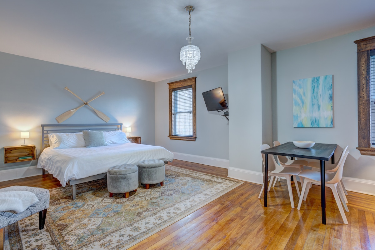 A suíte totalmente atualizada, com vistas panorâmicas deslumbrantes para o porto, estende-se na cama king-size e deixa seus sonhos navegarem. Desfrute da orla da primeira fila, barcos navegando, cavalos trotando ao longo da icônica Bluenose Drive. Este edifício do século XIX oferece as vantagens de um hotel boutique; sauna infravermelha, roupões de banho, TV LED, ferro de passar, secador de cabelo, Keurig, micro-ondas, frigobar, com sua própria entrada privativa. Localizado a 50 metros do Bluenose, você não pode chegar mais perto, sem ficar a bordo!