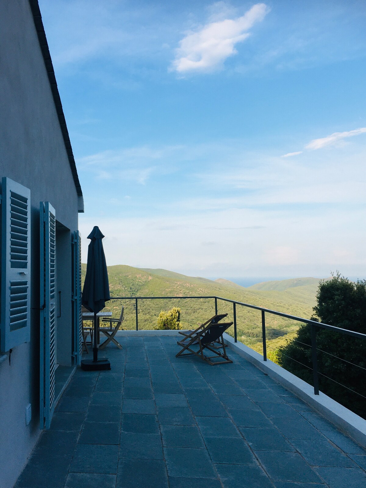 Casa de 75 m2 completamente nova, equipada com bom gosto no estilo tradicional do cabo corso (lauzes, azulejos de cimento, persianas abertas), construída sobre um antigo pomar familiar. O terraço de 55 m2, não esquecido, oferece vistas desobstruídas do vale, propício ao relaxamento absoluto. Você pode, em total calma, observar o sol e o nascer da lua, relaxar nas espreguiçadeiras enquanto ouve o som do riacho, tendo um aperitivo enquanto contempla o mar e a montanha...em completa serenidade.