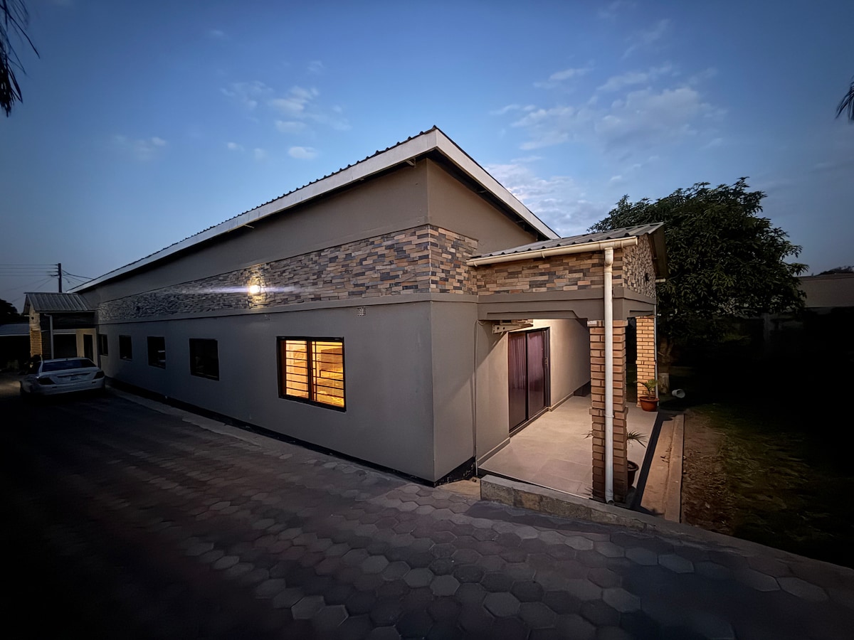 Localizado dentro de uma comunidade residencial movimentada de Lusaka. 10 a 15 minutos a pé da Universidade e Hospital Levy Mwanawasa, a 500 m de um centro comercial conveniente, a 20 minutos de carro do aeroporto e fácil acesso aos shoppings de alto tráfego Manda Hill , East Park, Arcades, Cachoeiras. Aviso amigável. Nossos amigos peludos, Milano,Popcorn & Clocky, também moram aqui. Eles não se importam com um tapinha na cabeça, podem ficar um pouco animados para conhecê-lo, mas prometem se acalmar rapidamente! Apenas vibrações positivas para as patas!