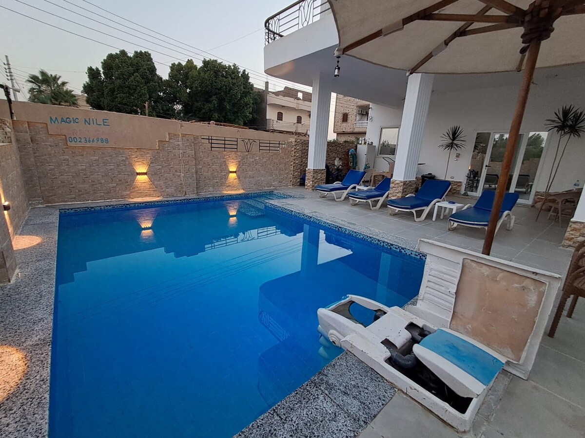 new quiet apartment with swimming pool and garden and perfect location 1 minute walking and u can reach everything like ATM . restaurants . pharmacy. supermarket and also car station to reach all temples 2minutes walking to reach the ferry to East ask us in chat about the 3 day program to visit all temples with private car and tour leader and hot air Ballon and trip in the nile by fluka and and other things