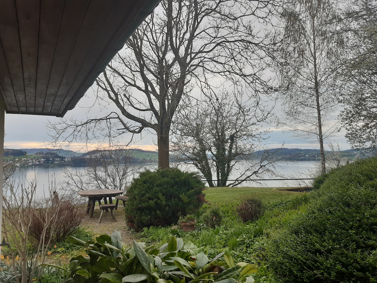 Desfrute do espaço de 60m2 com cozinha totalmente equipada. Dormir à moda japonesa (no chão) em esteiras de tatame com futon (1,60) e (1,40). Futons são colchões duros japoneses. Se desejar, podemos disponibilizar um berço. Você viverá perto da floresta, mas estará a 15 minutos de ônibus do centro de Lucerna. Se você vier de carro, terá mais independência. Alguns hóspedes sentem falta da atmosfera da cidade à noite (restaurantes, bares etc.) Cães são bem-vindos, o jardim é cercado.