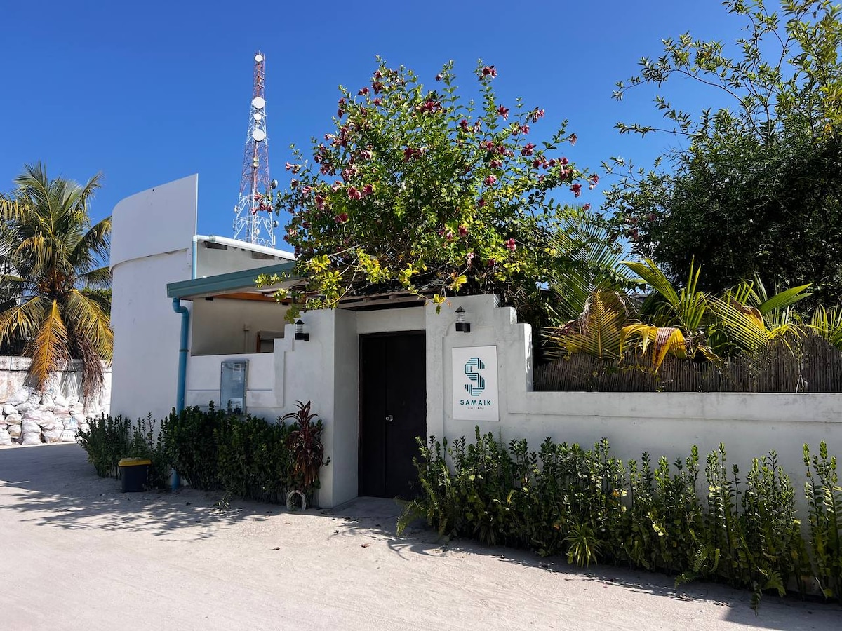 O Samaik Cottage oferece um refúgio único em Thulusdhoo, proporcionando aos hóspedes um ambiente tranquilo e pacífico. Esta vila privativa é uma joia escondida, ideal para viajantes que procuram uma acomodação privativa com uma área externa espaçosa, com jardim e cozinha totalmente equipada!
