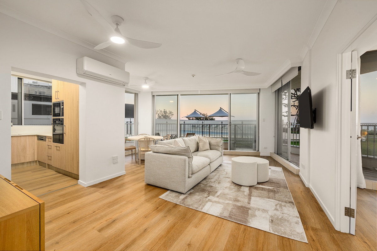 Esta é a verdadeira vida à beira-mar — rara, térrea e diretamente ligada ao estilo de vida pelo qual Main Beach é famosa. Posicionado no edifício à beira-mar bem protegido, este espaçoso apartamento de dois quartos e dois banheiros oferece acesso contínuo do seu terraço privado diretamente à piscina, gramado e praia além. Sem elevadores, sem multidões, apenas saia e você está lá.