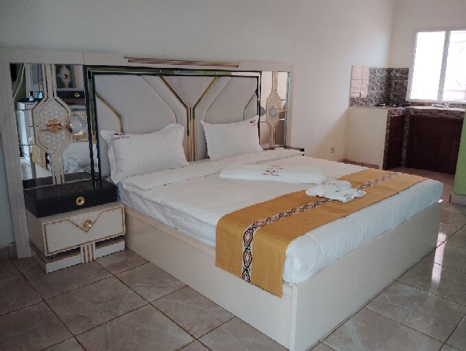 Esta acomodação moderna, tranquila e segura garante uma boa estadia, quer você esteja com a família, amigos, amantes, colegas. Você pode admirar, através de suas grandes janelas de vidro, as belas palmeiras e outras plantas verdes que, sem dúvida, serão o deleite dos seus olhos. Uma banheira de hidromassagem lhe dará um momento de relaxamento. Uma grande cozinha moderna e totalmente equipada estará à sua disposição se você quiser preparar bons pratos.