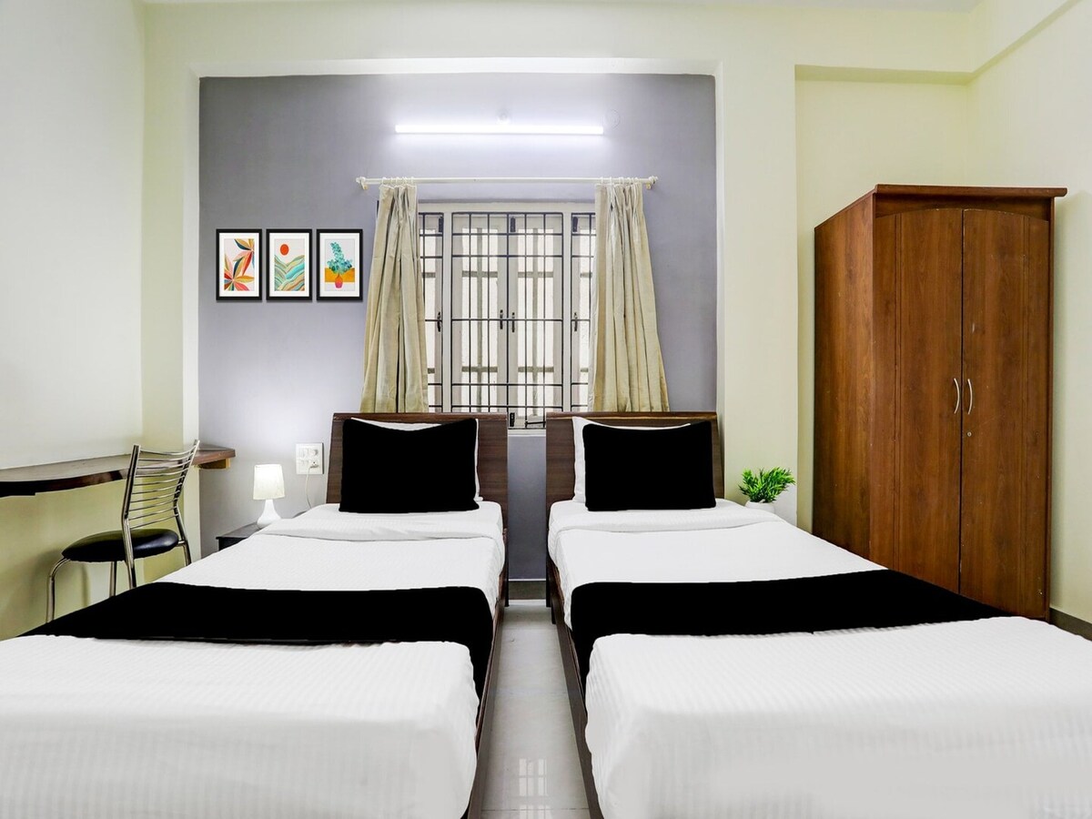 VISÃO GERAL - Espaço de convivência Co para profissionais que trabalham perto do distrito financeiro do jornalista Colony. Tem 6 quartos em cada andar com uma despensa compartilhada. ALIMENTOS - Temos um cozinheiro, B/F é Incl e outras refeições são AMENIDADES cobráveis - Wifi e WFH espaço, Limpeza Diária, Power back up, Máquina de Lavar Roupa etc QUARTOS - camas, colchões, armários e banheiros anexos. OUTRAS INFORMAÇÕES - Os custos de uso de ar-condicionado em são aplicáveis, troca de roupa de cama uma vez por semana. Por favor, carregue seu próprio cobertor, toalha e produtos de higiene pessoal