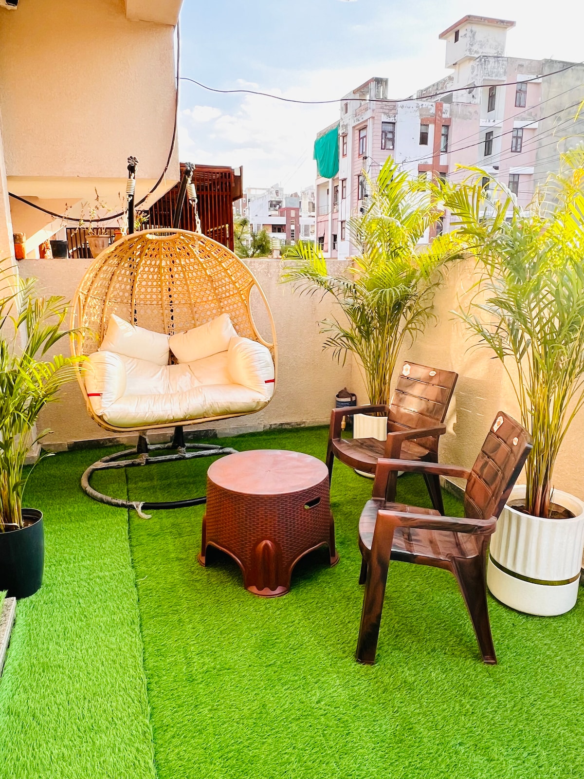 Bem-vindo à nossa pacífica e elegante vila 2 BHK em Jaipur. A vila apresenta um design moderno e minimalista com um tema de cor cinza suave, criando uma atmosfera calma e elegante. Rodeada por vegetação exuberante, oferece uma escapada tranquila da vida agitada da cidade. Além disso, a cada 10 minutos, você experimentará a emoção de um voo passando por cima, adicionando um toque único à sua estadia.