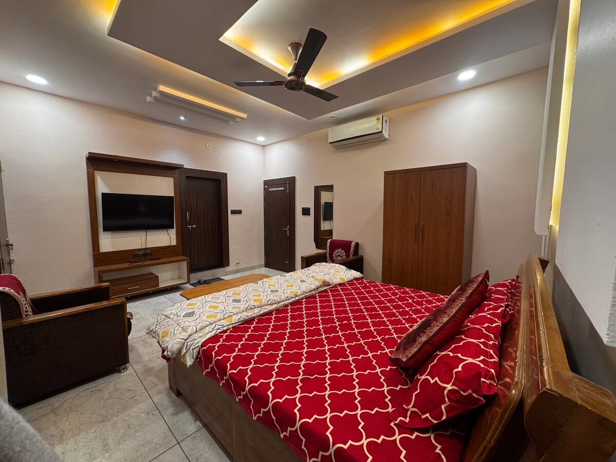 ✨ Lanka Vijay – Ramayana com tema de guerra🐦🔥 com 2 camas king🛏️, ar condicionado❄️, TV📺, geladeira, cozinha, refeições caseiras quentes pagas e café da manhã. 🚙 O e-rickshaw na porta facilita o deslocamento na cidade – perfeito para famílias e grupos! 🌟 Boas-vindas a uma acomodação com avaliação de Superhost, interiores brilhantes, murais de guerra e serviços que você vai adorar. 📍 Ram Mandir – 9 km (20 minutos) | Guptar Ghat – 3 km | Aeroporto – 6 km | Estação AYC – 1,2 km | Ram Path – 0,7 km 🔎 Busque “Neeta Homestay Ayodhya” no Google Maps para obter mais informações e contato.