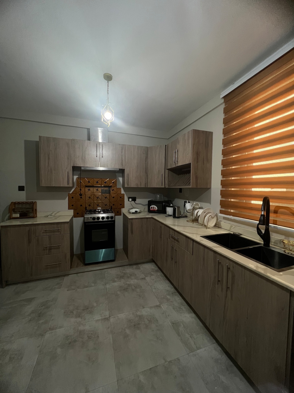 This apartment is located within Mariville Homes Estate, a gated residential community off Spintex Road, near Manet Junction. Conveniently situated just a 15-minute drive from the airport, the property offers a secure and serene environment. The estate is gated and monitored 24/7 by private security, ensuring controlled access. The apartment features two bedrooms and can comfortably accommodate up to four guests. Both bedrooms are en suite and feature king-size beds.