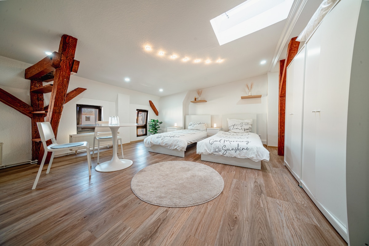 O belo apartamento de construção antigo está localizado a 2,5 km a sudoeste da cidade em um bairro animado com muitas lojas, restaurantes e lanches baratos. Foi cuidadosamente renovado até 2023 e oferece um banheiro moderno com banheira, máquina de lavar roupa, cozinha totalmente equipada, pisos de madeira e dois quartos com duas camas de solteiro cada.