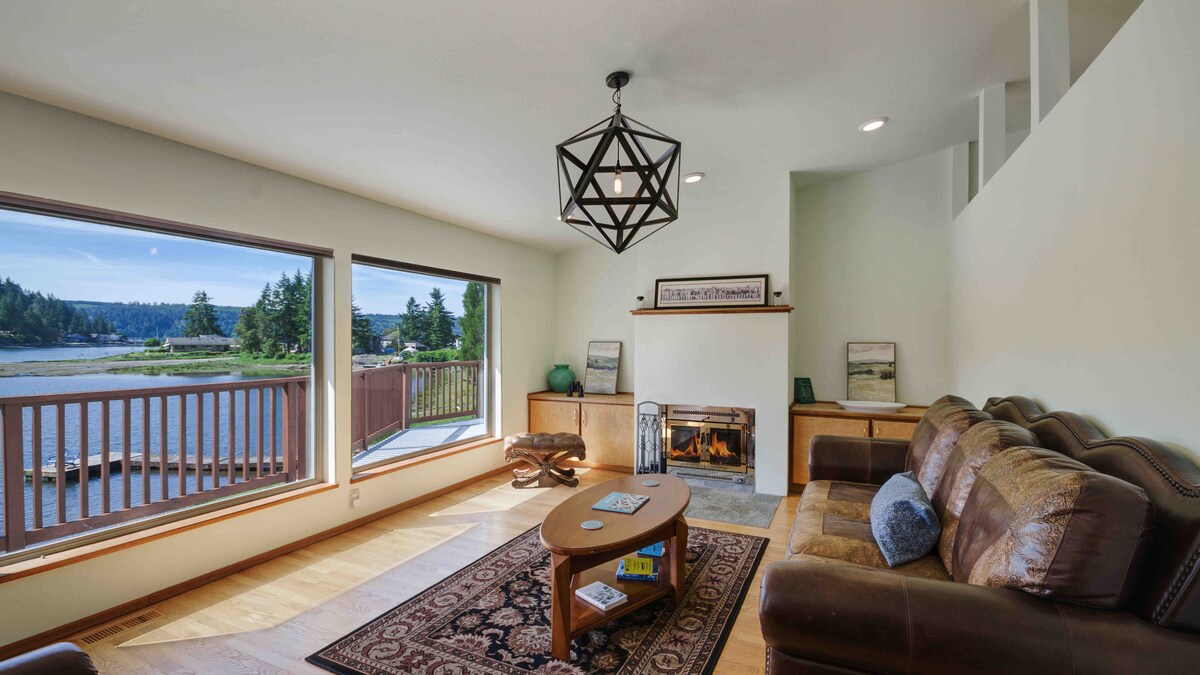 Relaxe e aproveite a vista neste elegante retiro em uma casa na ilha! Localizado em um bairro fechado na Ilha Harstine. Vistas deslumbrantes do Puget Sound e das Montanhas Olímpicas Lareira giratória Mesa de bilhar Cozinha 1 quarto com cama king size 1 quarto com cama queen size 1 quarto com 2 camas de solteiro 1 quarto de bônus para crianças com cama de casal no loft Lavanderia Toca-discos Sonos Comodidades da comunidade: Piscina olímpica e banheira de hidromassagem Quadras de tênis e pickleball Playground Trilhas de caminhada Lareiras na praia Vida selvagem Caiaque, rampa para barcos, marina e muito mais