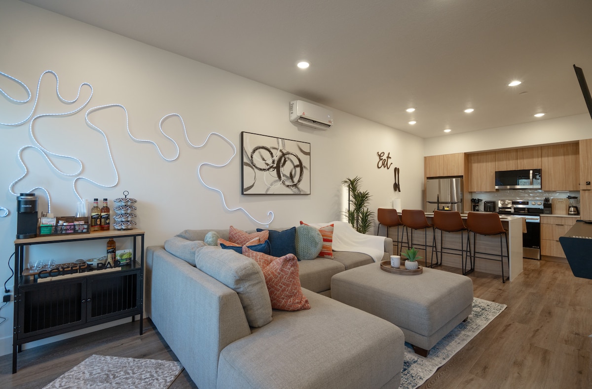 Suíte de porão recém-concluída de 1800 pés quadrados - sua casa perfeita longe de casa! Esta espaçosa suíte possui um sistema de amaciador de água, cozinha completa, entrada com teclado numérico, máquina de lavar/secar roupa, itens essenciais de banho, mesa de jogo e smart TVs para entretenimento. O anfitrião mora no primeiro andar, mas os hóspedes têm uma entrada privada e não têm espaços compartilhados. Convenientemente localizado a apenas 15 minutos do centro de Salt Lake City e a 40 minutos de Park City - perfeito para explorar tudo o que Salt Lake tem a oferecer.