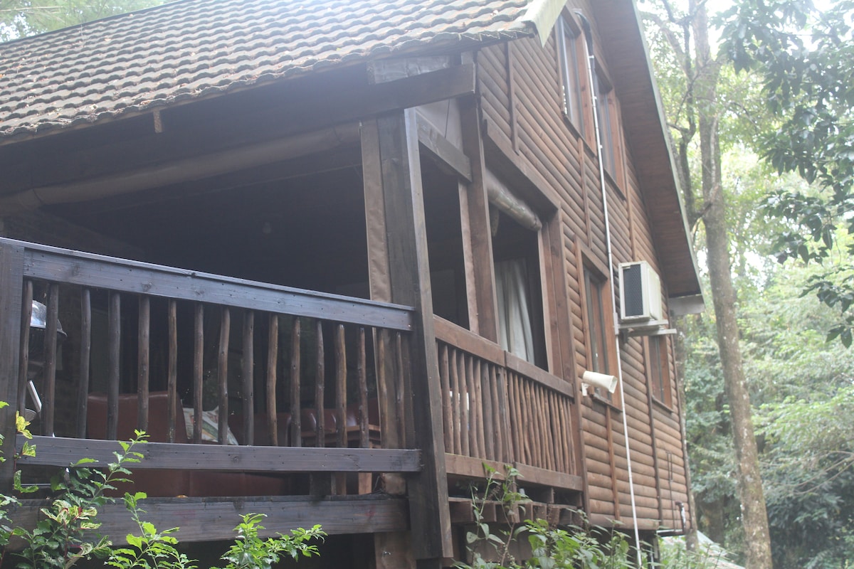 The lodge nestles in an evergreen forest. It gives a feeling of anticipation for fairies and other woodland creatures to welcome you. The forest gives complete privacy. It's a place where visitors can feel at one with nature. Bird parties visit and samango monkeys forage in the trees. The Log Cottage sleeps four guests. There are short walks along the mountain stream and you can see picturesque waterfalls
