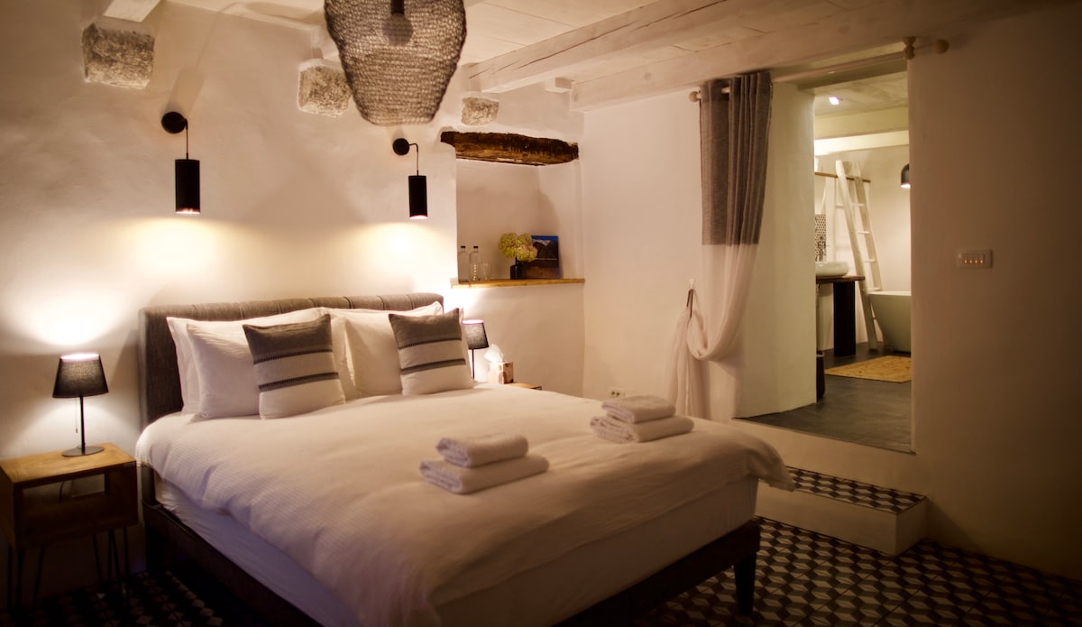 Imagine peace & quiet, 100 metres from the road up a stone track, no immediate neighbours. (Owner lives onsite in the attic of house, separate entrance). Seating areas around the house offer different beautiful views Morning sunrise, shaded south seating; but sunny in winter! Lunch/ dinner table west facing shaded by old pear tree. Dark starry nights, moonlit or Milky Way, silent or animal sounds! Village life is a 10min meadow walk. In summer a cosy traditional bar/cafe serves home-cooked food.
