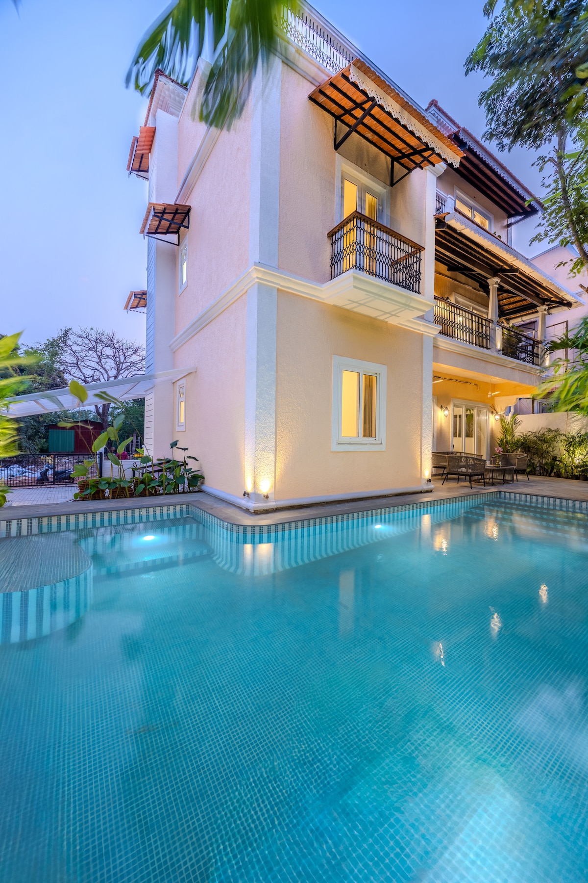 - Piscina 22x8x4 - Piscina/Mesa de Bilhar - Fogueira ao ar livre - Smart TV de 55 polegadas com Netflix - HiFi Home Theatre 5.0, amplificador Marantz e alto-falantes Taga - Colchões Ortho de 8” e móveis de qualidade - Totalmente climatizado - 5 ACs - Banheira no banheiro principal - Gramados verdes com árvores frutíferas - Recurso de água no jardim - Alto-falantes externos Bluetooth - Cozinha totalmente equipada - Churrasco - Serviços de zeladoria e limpeza - Carrom, badminton e jogos de tabuleiro - Backup de energia do inversor - Tranquilo e privado
