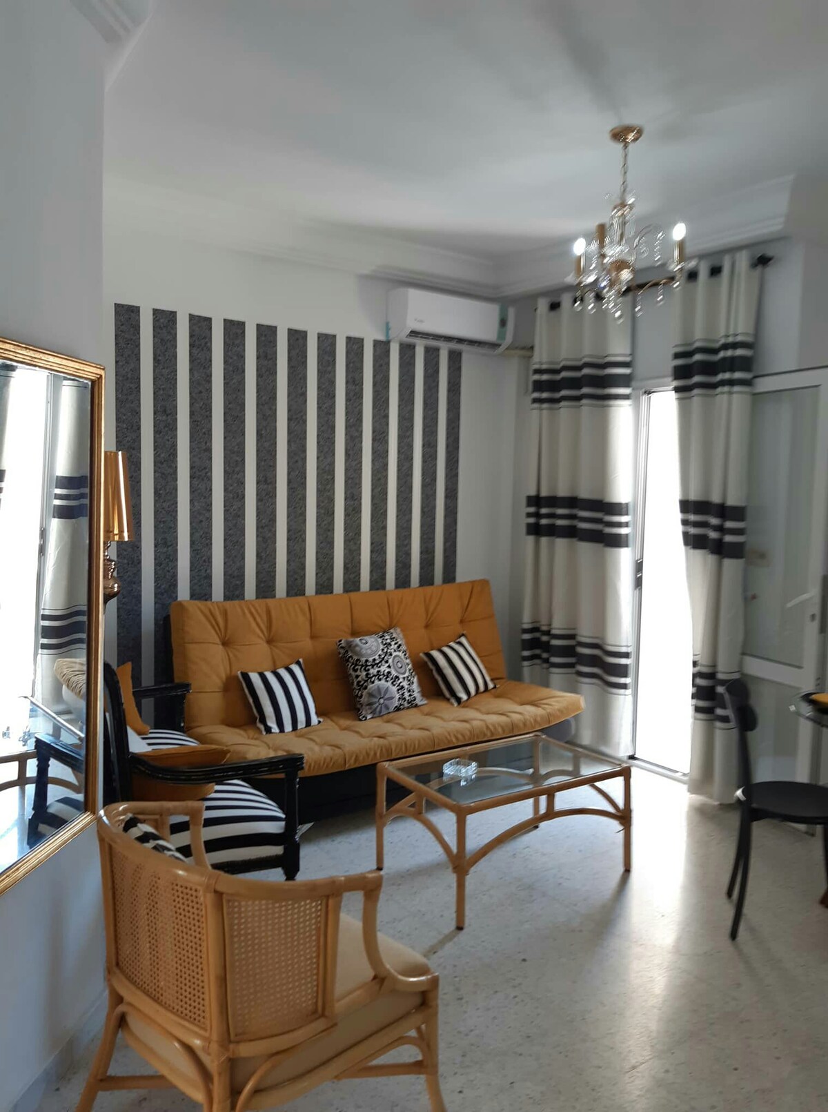 Um apartamento charmoso muito coquete no primeiro andar de um edifício à beira-mar. O edifício está localizado no centro da cidade de Mahdia, perto de todas as comodidades (restaurantes e cafés turísticos, a medina, monumentos históricos, grandes superfícies...) bem em frente a um passeio marítimo muito agradável