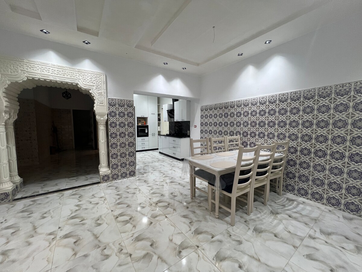 Que bom ter vocês aqui A casa é muito grande e arrumada. A casa tem uma sala de estar que se abre para uma vista para o mar, dois quartos, um banheiro e uma cozinha com uma bela vista para o mar, uma máquina de lavar roupa, um micro-ondas, um forno, três aparelhos de ar condicionado no corredor e dois nos quartos com água quente e um aquecedor para toda a casa Mar de Mahdia, Maarouf, limpo Conhecendo todos os requisitos da vida, está lá e perto de casa para restaurantes, lojas de roupas e lugares de jogos infantis. Aproveite o pôr do sol do terraço da cozinha ou da grande varanda. Boa experiência E tem a internet para compartilhar os bons momentos com quem amamos e postar nossas fotos