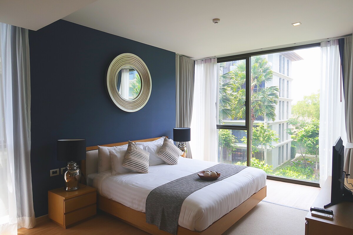 Sansiri Baan Mai Khao, um condomínio em estilo resort de luxo na tranquila Praia Mai Khao de Phuket, um lugar perfeito para suas férias. O quarto "Blue Marine" foi projetado para estar em harmonia com areia branca e água azul clara da praia de Mai Khao. Nossos móveis projetados de alta qualidade tornarão sua estadia confortável. Instalações e serviços que você pode usar gratuitamente : muitas piscinas, academia, sauna, andar de bicicleta. *DESCONTO para novo cadastro airbnb .com/c/lupthawita