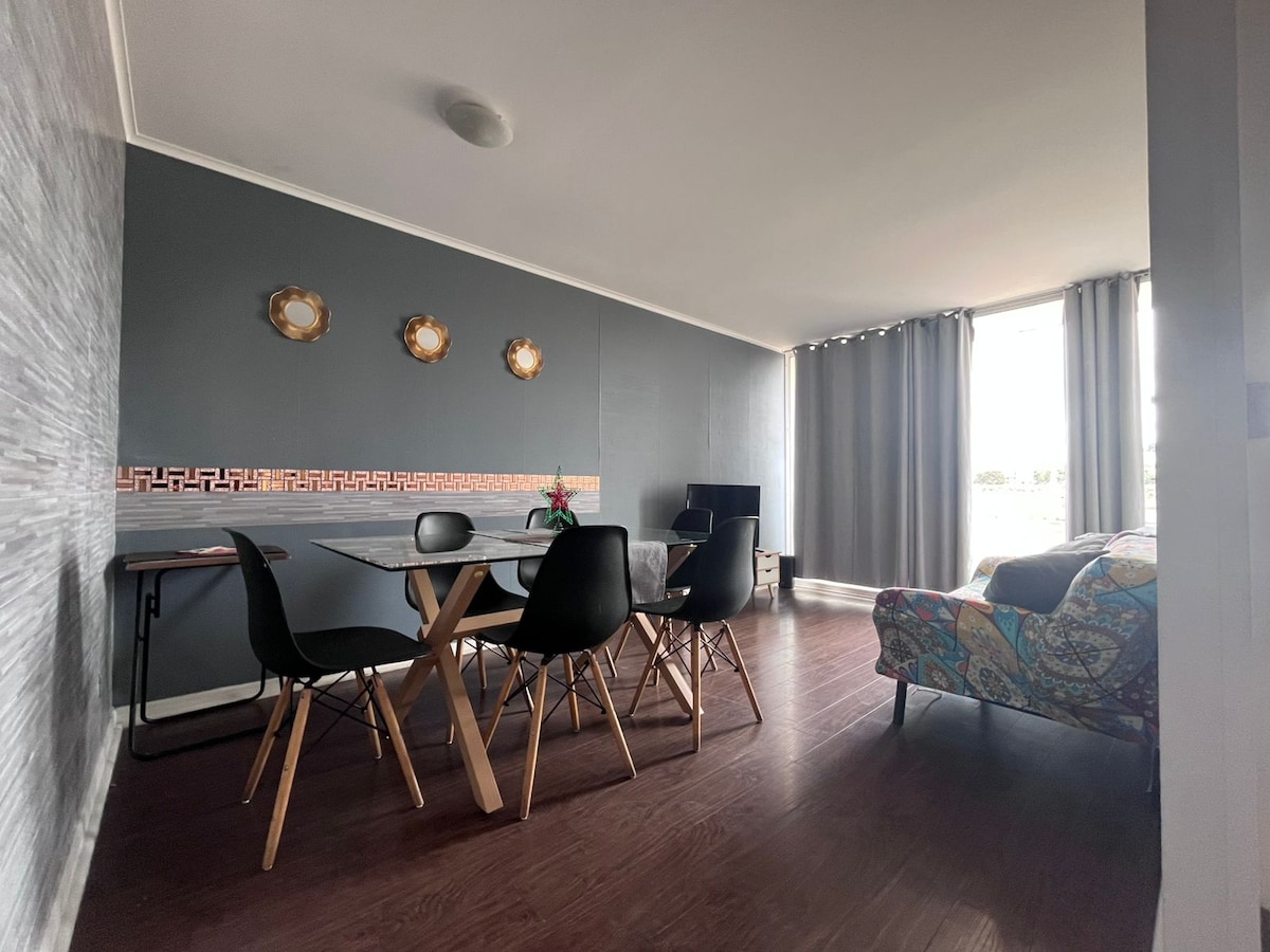Com estacionamento conveniente e um apartamento moderno localizado em uma área tranquila, ideal para famílias, casais ou viajantes de negócios. Totalmente equipado: 2 quartos (master com cama de casal, segundo com cama de solteiro) e sofá-cama para 1 pessoa na sala. 2 banheiros completos Cozinha equipada com forno, micro-ondas, geladeira, máquina de lavar roupa e utensílios. Sala com TV, Wi-Fi e varanda. Estacionamento privado e piscina incluídos. Muito perto do metrô e do Mall Plaza Vespucio.