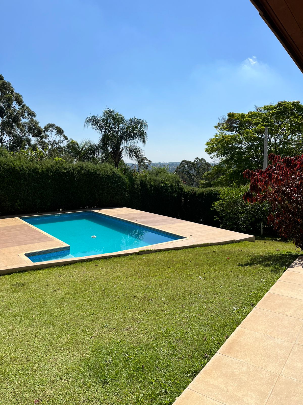 Casa charmosa, aconchegante, com privacidade, em condomínio fechado no campo, seguro, tranquilo, aceita pets, 64 km de SP - Wi-Fi, 1.600 m² de área com amplo gramado, piscina particular com 1,3m de profundidade e rede de proteção. Sala de estar, jantar, lareira, cozinha americana com despensa, 4 suítes e lavabo. Varanda com churrasqueira, forno de pizza, redes. Espaço para vários carros. Segurança Souza Lima, bombeiro e pronto atendimento. Muito sol de dia e friozinho à noite. Voltagem: 110V