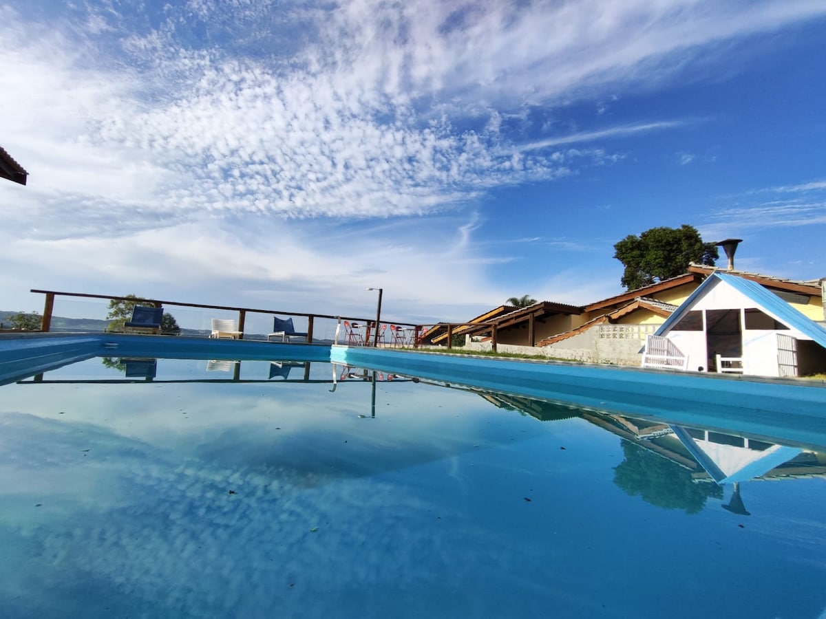 O valor varia conforme a quantidade de hospedes e diárias, ao realizar uma solicitação de reserva escolha a quantidade correta. Espaço perto do centro da cidade. Você vai amar o espaço por causa do aconchego. Espaço ótimo para casais, famílias (com crianças), grandes grupos e animais de estimação de pequeno porte. Há um amplo espaço arborizado com piscina, toboágua, campo de futebol, churrasqueira, área para fogueira, dois quiosques e muita tranquilidade a menos de 50 minutos de São Paulo.