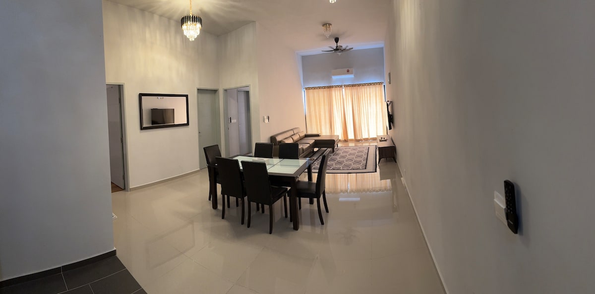 Quantas pessoas podem se hospedar aqui: O apartamento pode acomodar 4 pessoas e ainda confortável para 6 pessoas. Está localizado no coração da cidade de Melaka e a apenas 3 km do edifício histórico A 'Famosa e do Edifício Studthuy. Instalações: Fornece estacionamento GRATUITO para 1 carro no nível 2. Outros podem estacionar no térreo. Lista de comodidades fornecidas dentro da casa: Este apartamento elegante também vem com 2 camas tamanho queen e 1 sofá-cama dobrável tamanho queen, 1 toto extra, TV Android LED de 60", WI-FI, etc.