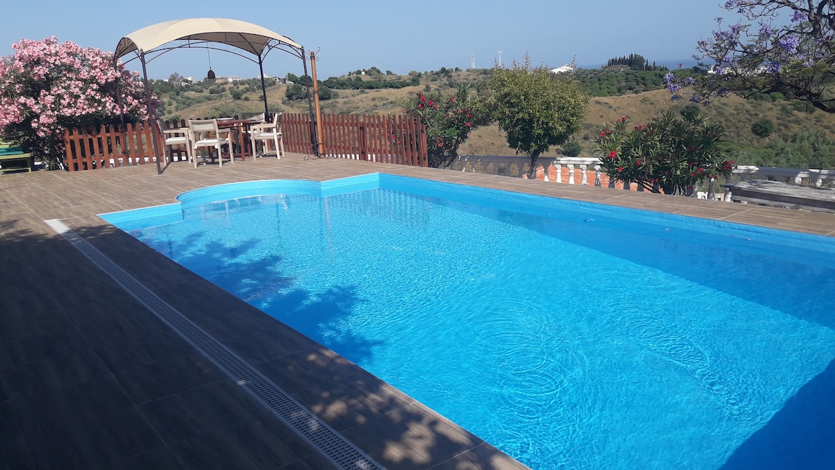 La casa è una antica e tipica dimora di campagna andalusa con muri spessi. La posizione privilegiata consente si spaziare con lo sguardo a 360 gradi, poiché è situata su una piccola altura che favorisce di fronte la vista del mare che si trova a quattro chilometri e delle montagne alle spalle E' consigliabile avere a disposizione un'auto per gli spostamenti, sebbene a poca distanza ci sia un servizio di autobus.
